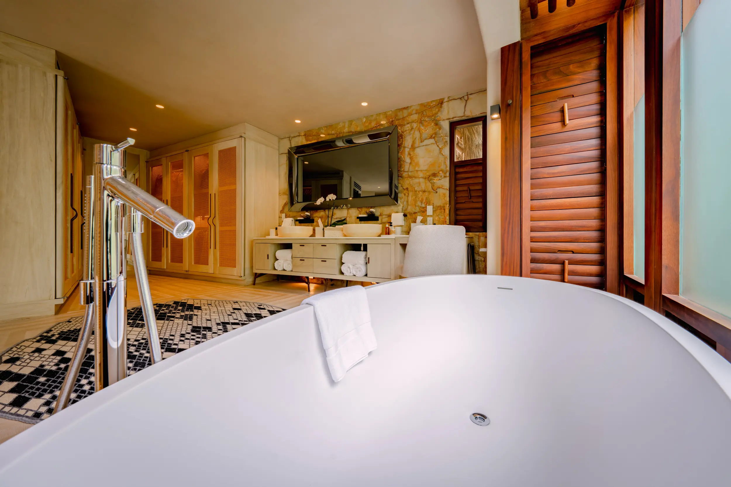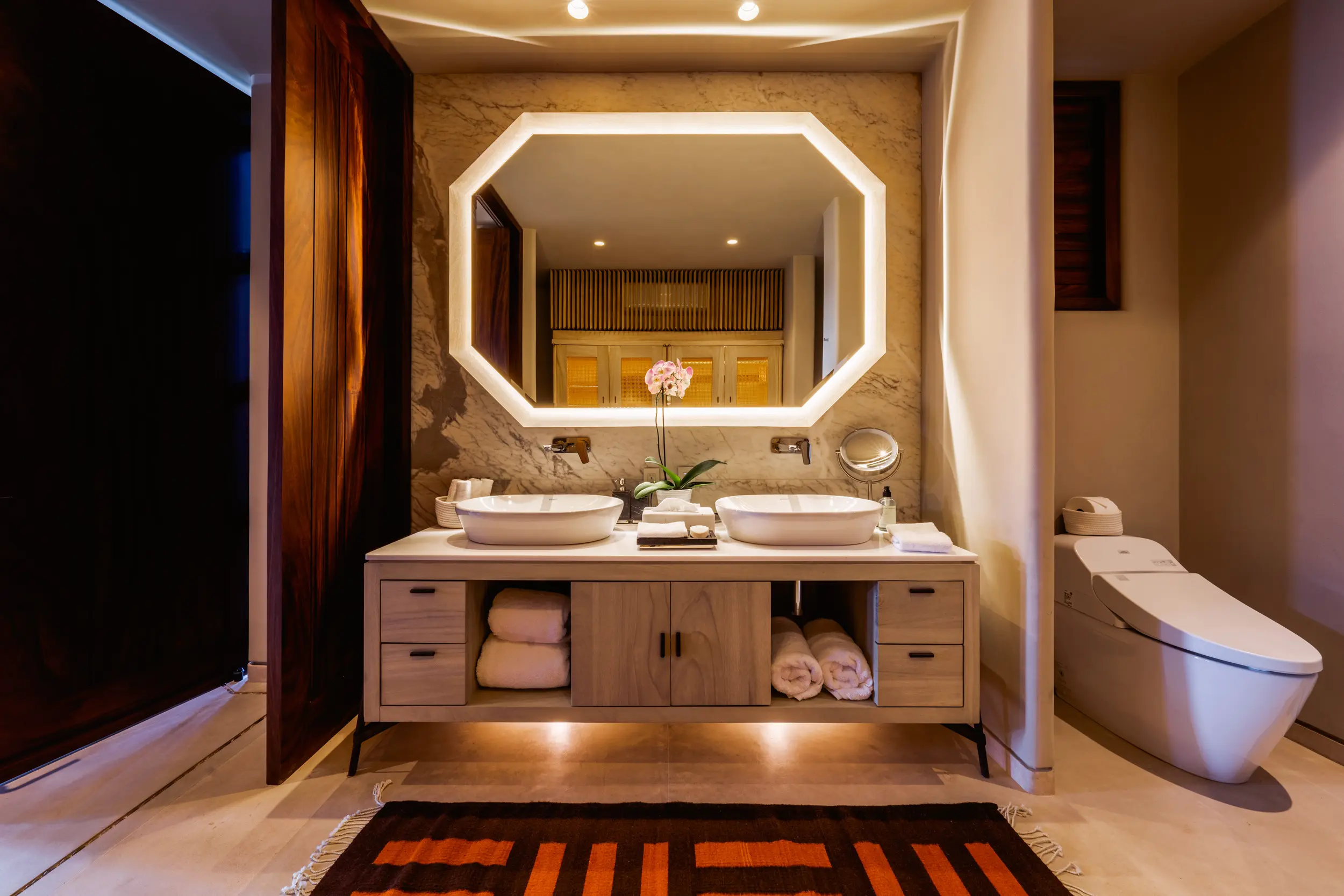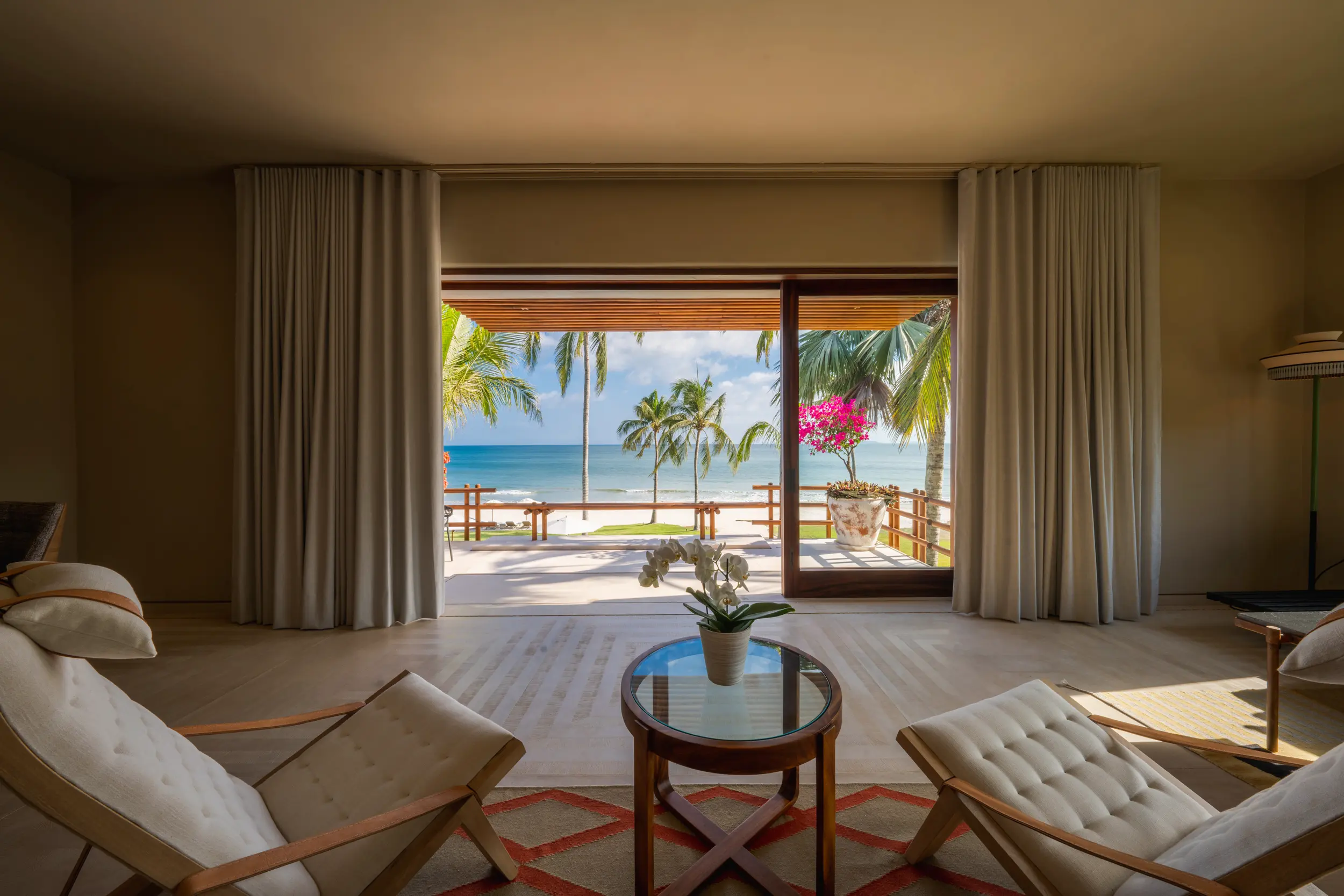 Created by acclaimed architect Manolo Mestre and styled by award-winning designer Joaquin Homs, Casa Akama blends sculptural architecture with refined, contemporary interiors. Every line and open-air space is conceived to frame the panoramic views of the Bay of Banderas and the Marietas Islands, immersing guests in the drama of the Pacific at every turn.