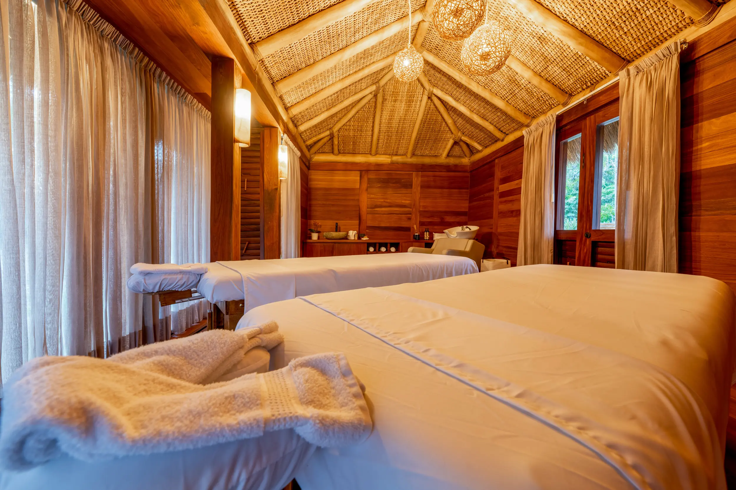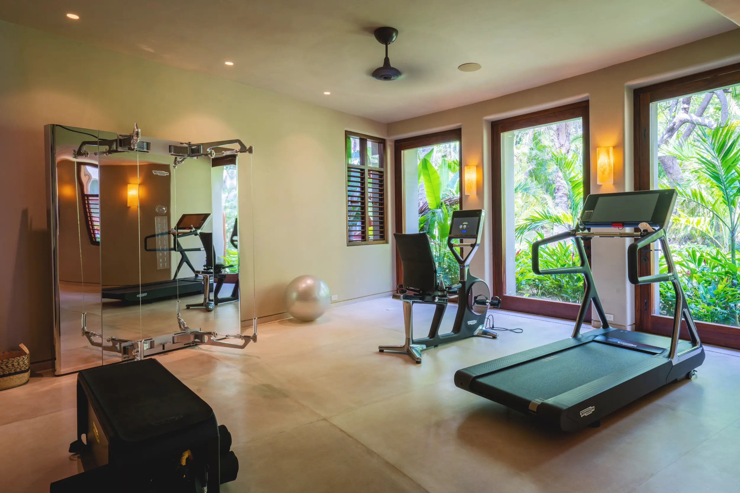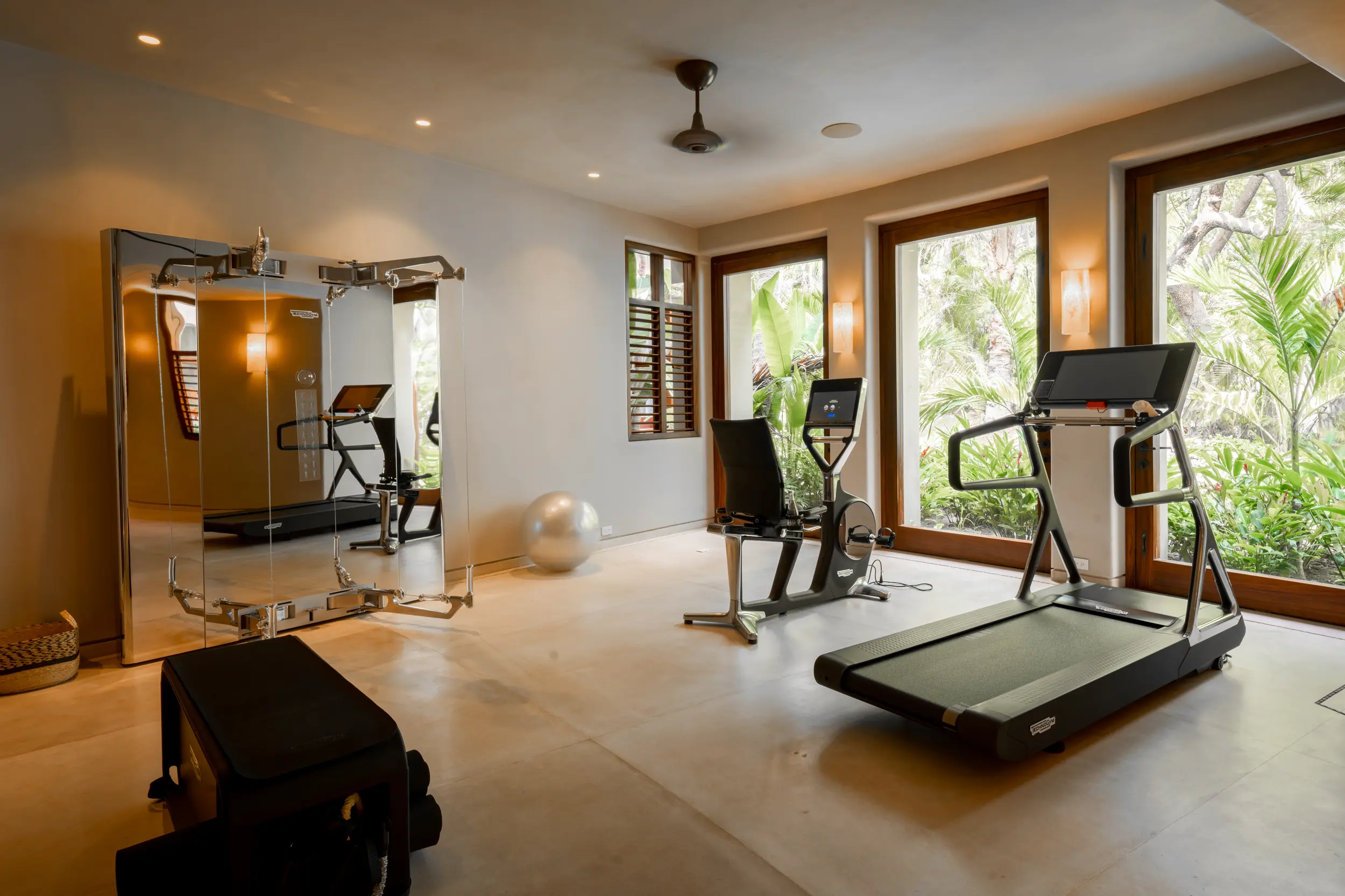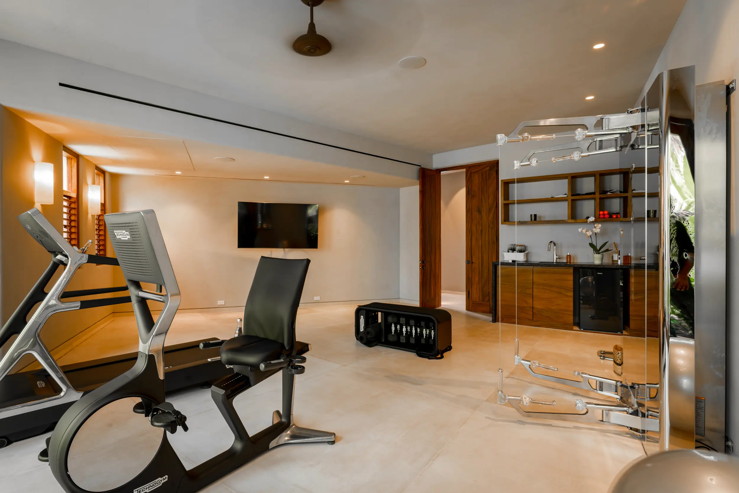 As day turns to evening, the rooftop sky bar becomes the villa’s most coveted perch. From here, guests savor sunset cocktails while watching the sky ignite over the Bay of Banderas, with uninterrupted views stretching to the Marietas Islands. For wellness-focused travelers, a private spa offers a serene retreat for rejuvenation, while the fully equipped gym with Technogym equipment supports comprehensive workouts without ever leaving the property.