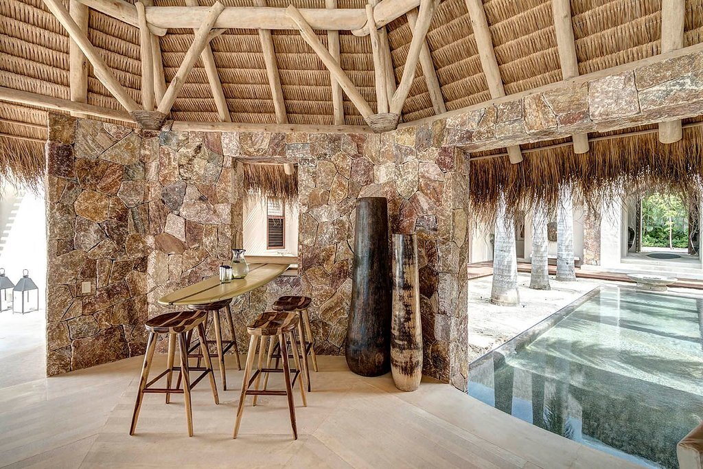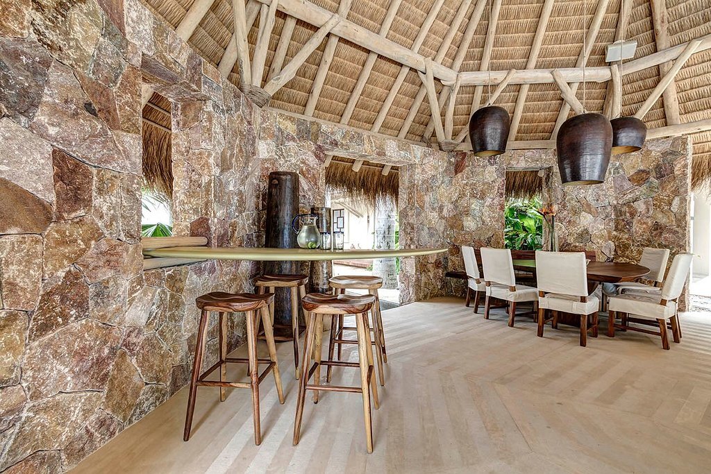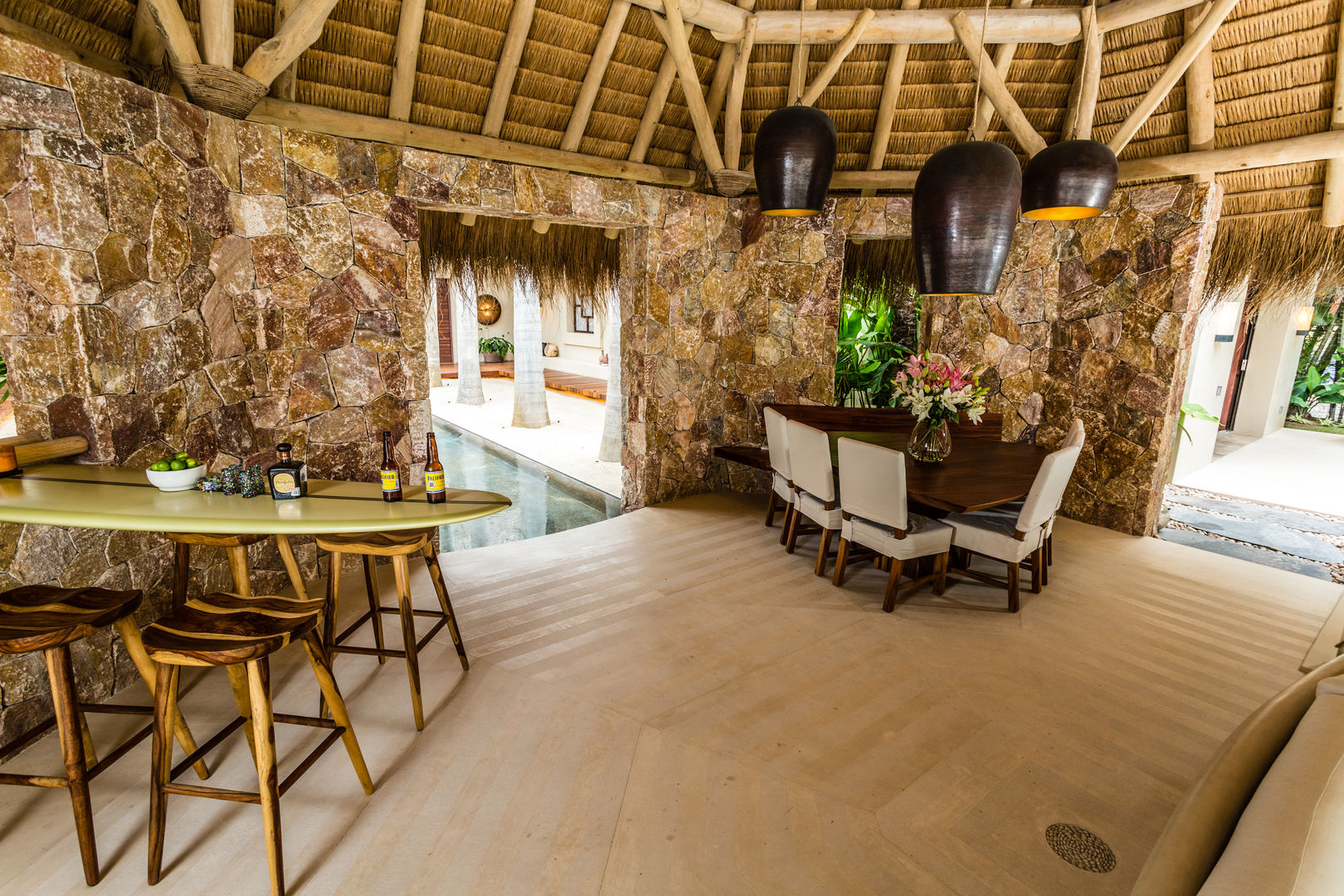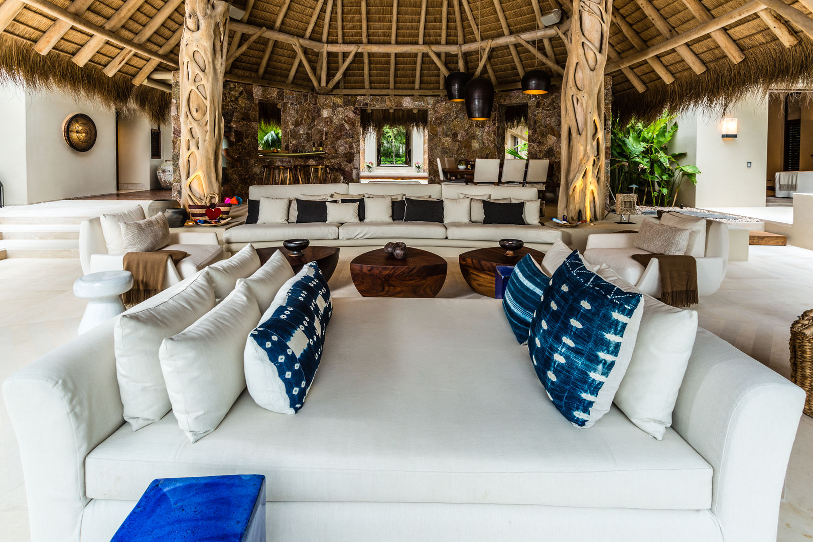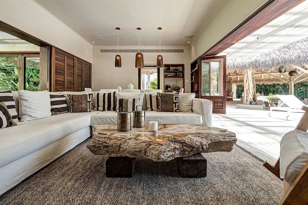 The villa’s design balances laid-back coastal living with refined sophistication. Hand-etched stone floors run throughout, setting an elegant foundation for tastefully curated furnishings and an eclectic mix of art and antiques. Every space feels considered yet relaxed, creating a tropical sanctuary that invites guests to slow down and unwind.