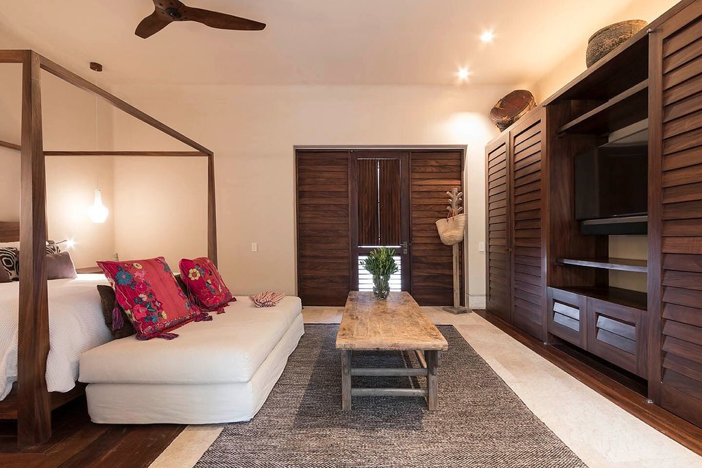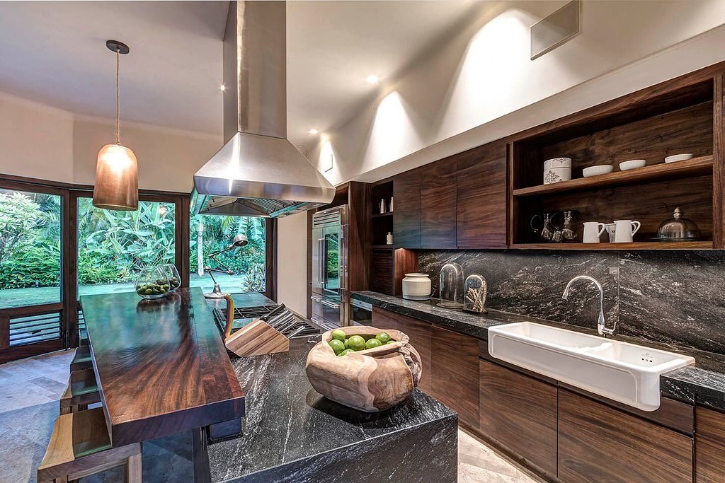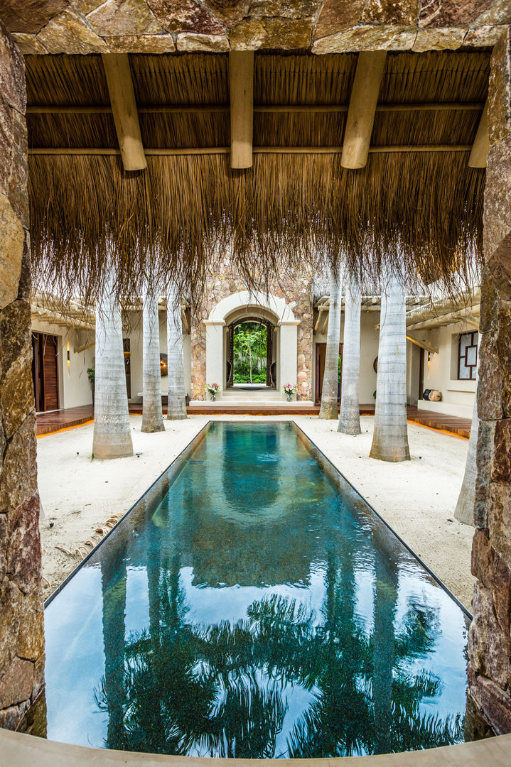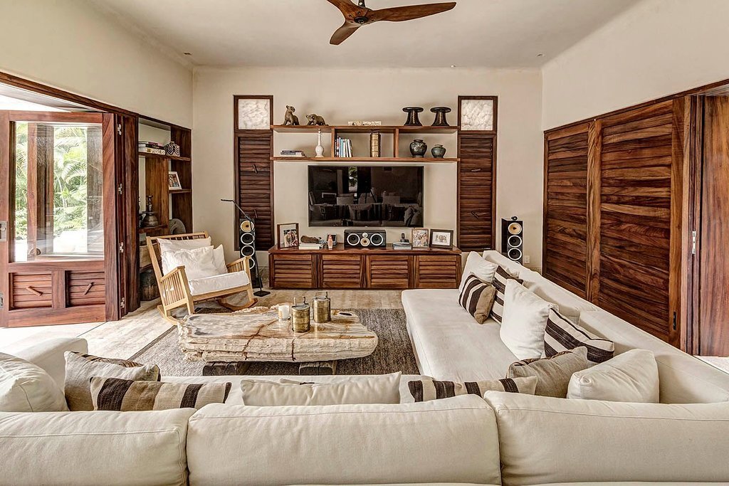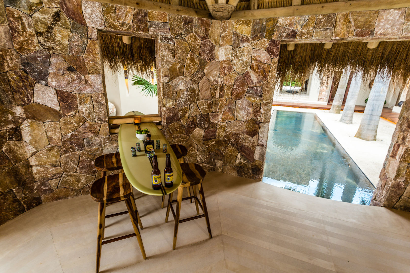The villa’s design balances laid-back coastal living with refined sophistication. Hand-etched stone floors run throughout, setting an elegant foundation for tastefully curated furnishings and an eclectic mix of art and antiques. Every space feels considered yet relaxed, creating a tropical sanctuary that invites guests to slow down and unwind.