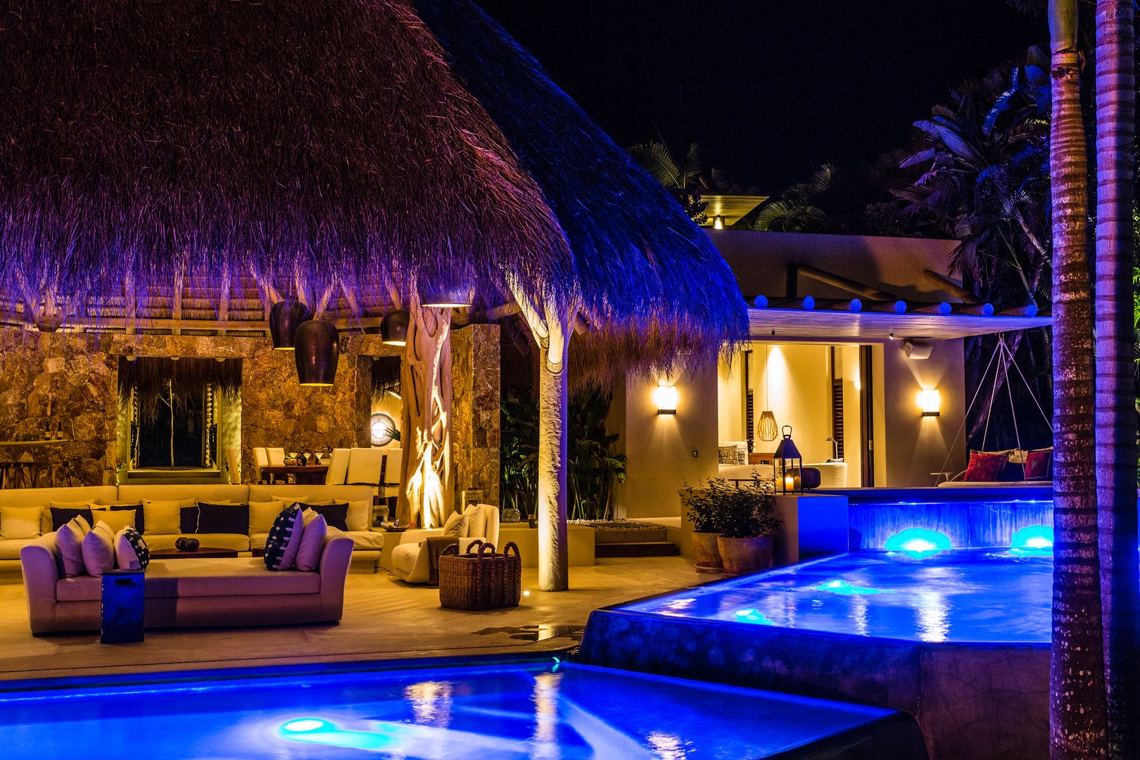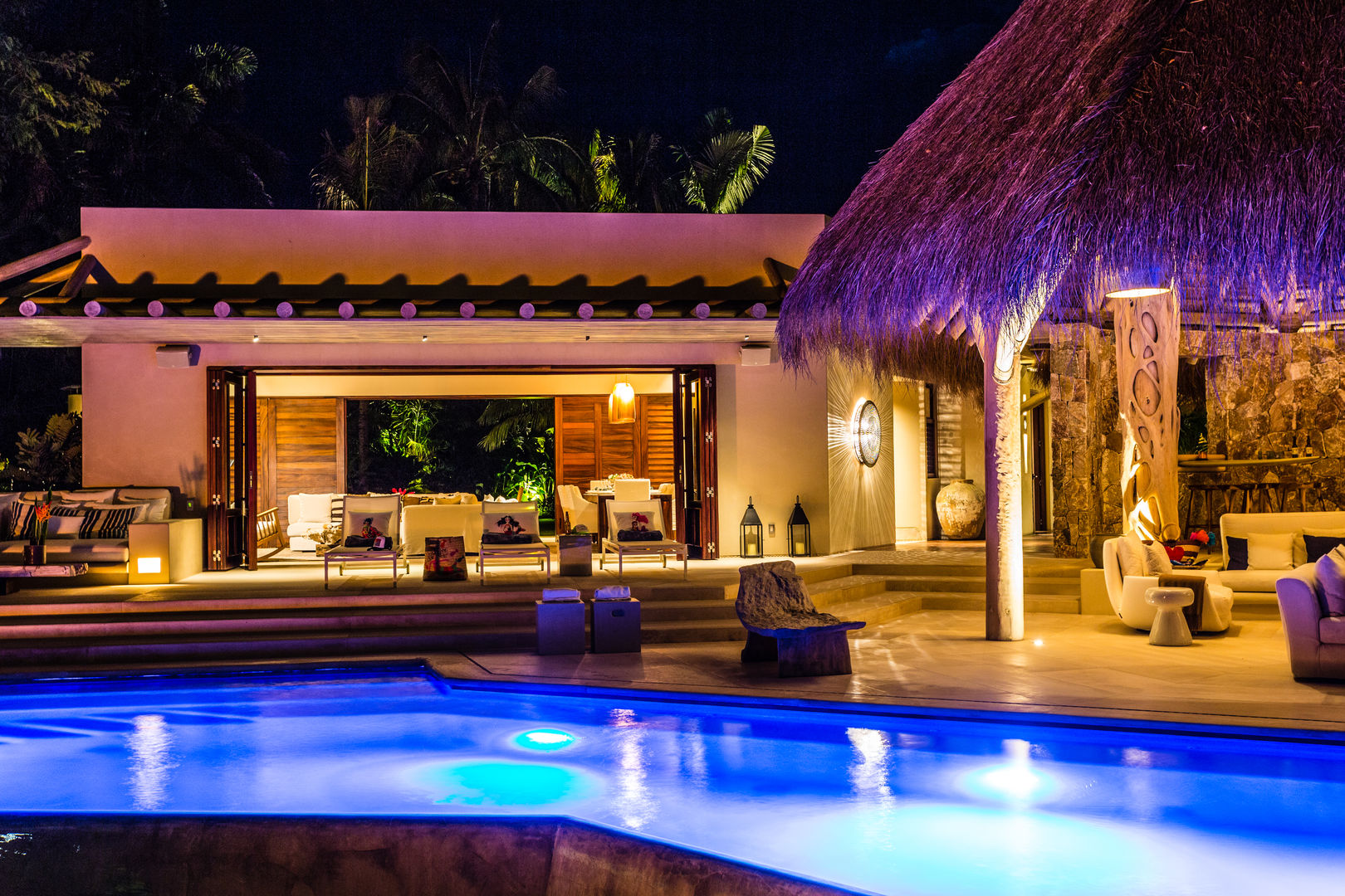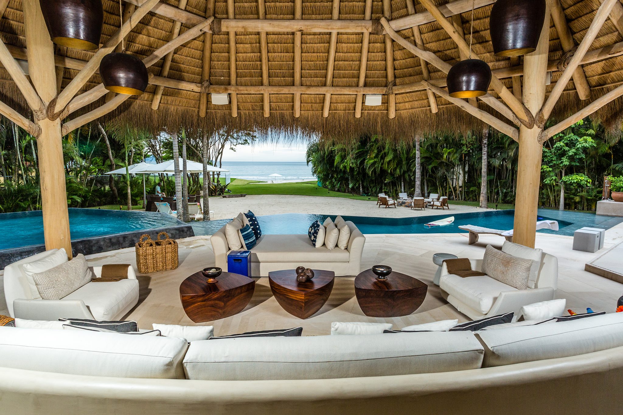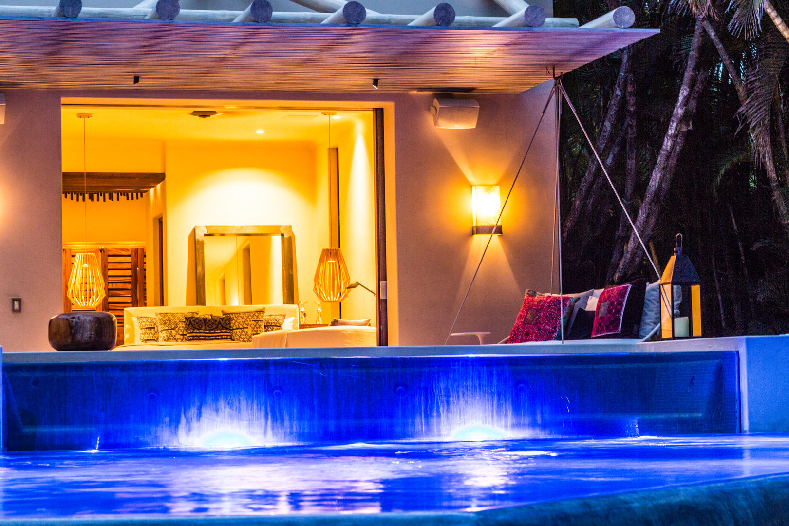 Indoor and outdoor living blend seamlessly at Casa Escondida. The heart of the home flows out toward the ocean, where a three-tiered infinity pool appears to spill into the horizon. Guests can recline in the refreshing waters, retreat beneath the shade of a grand palapa, or sink into a swinging daybed to watch the sun sink into the Pacific in a blaze of color.