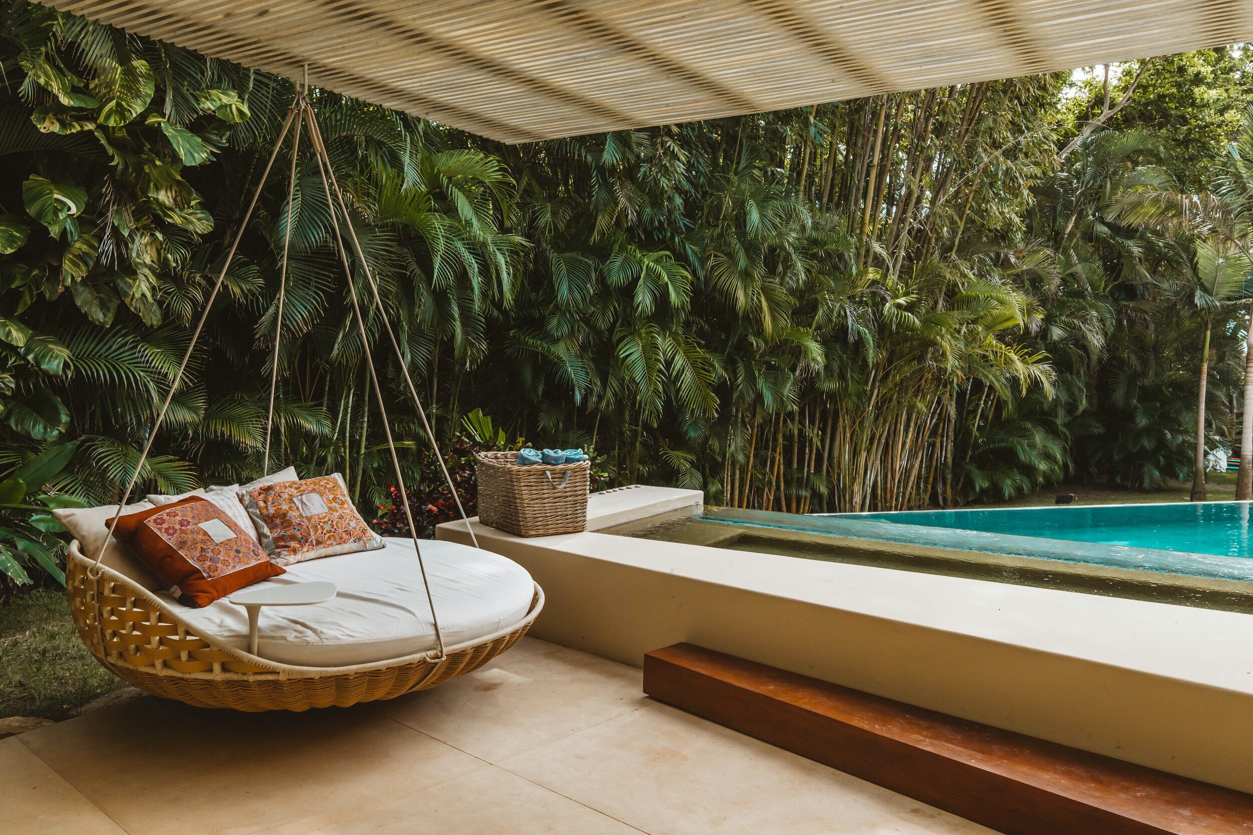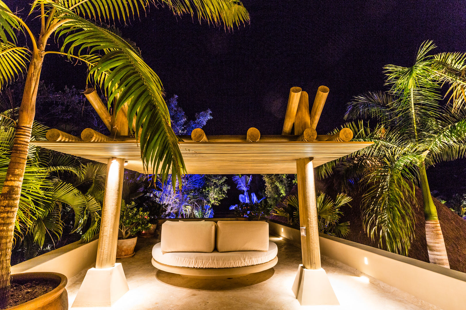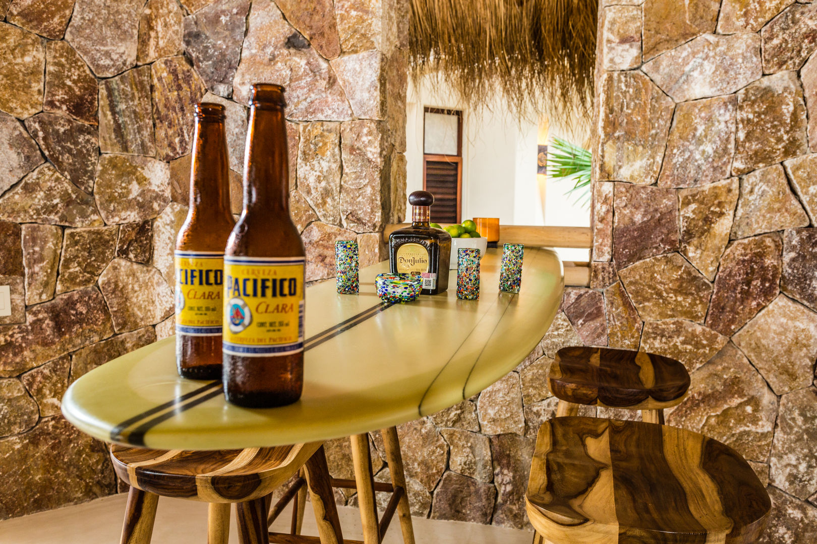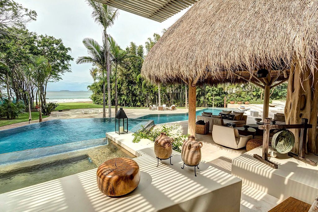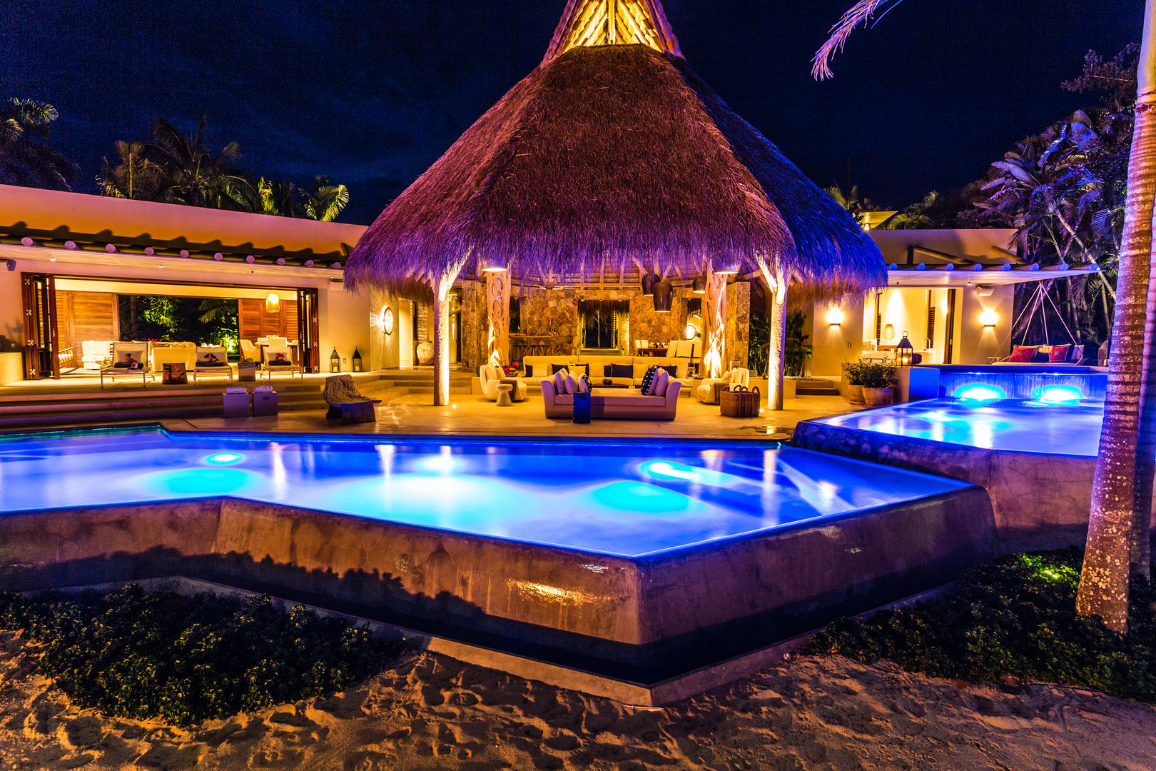 Indoor and outdoor living blend seamlessly at Casa Escondida. The heart of the home flows out toward the ocean, where a three-tiered infinity pool appears to spill into the horizon. Guests can recline in the refreshing waters, retreat beneath the shade of a grand palapa, or sink into a swinging daybed to watch the sun sink into the Pacific in a blaze of color.