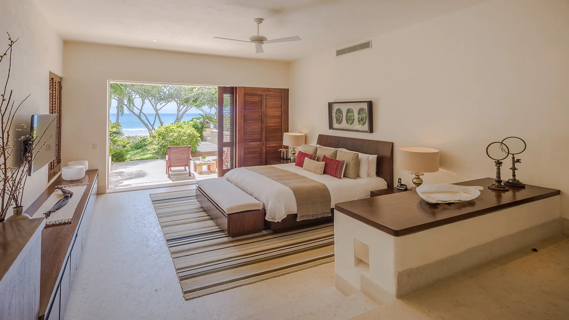 Outdoors, a spacious terrace and Jacuzzi invite guests to linger in the ocean breeze. An infinity pool overlooks the water and frames a striking panorama of the Islas Marietas, setting the scene for leisurely days in the sun. The ranch also offers access to a private beach just a few steps from the waves, an appealing setting for surfing, paddle boarding, kayaking, or simply admiring the views of the Marieta Islands.